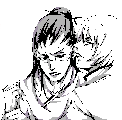 上気した顔を見られないように顔を背けたヒョーゴにキュウゾウは音を立てずに顔を近づけ。